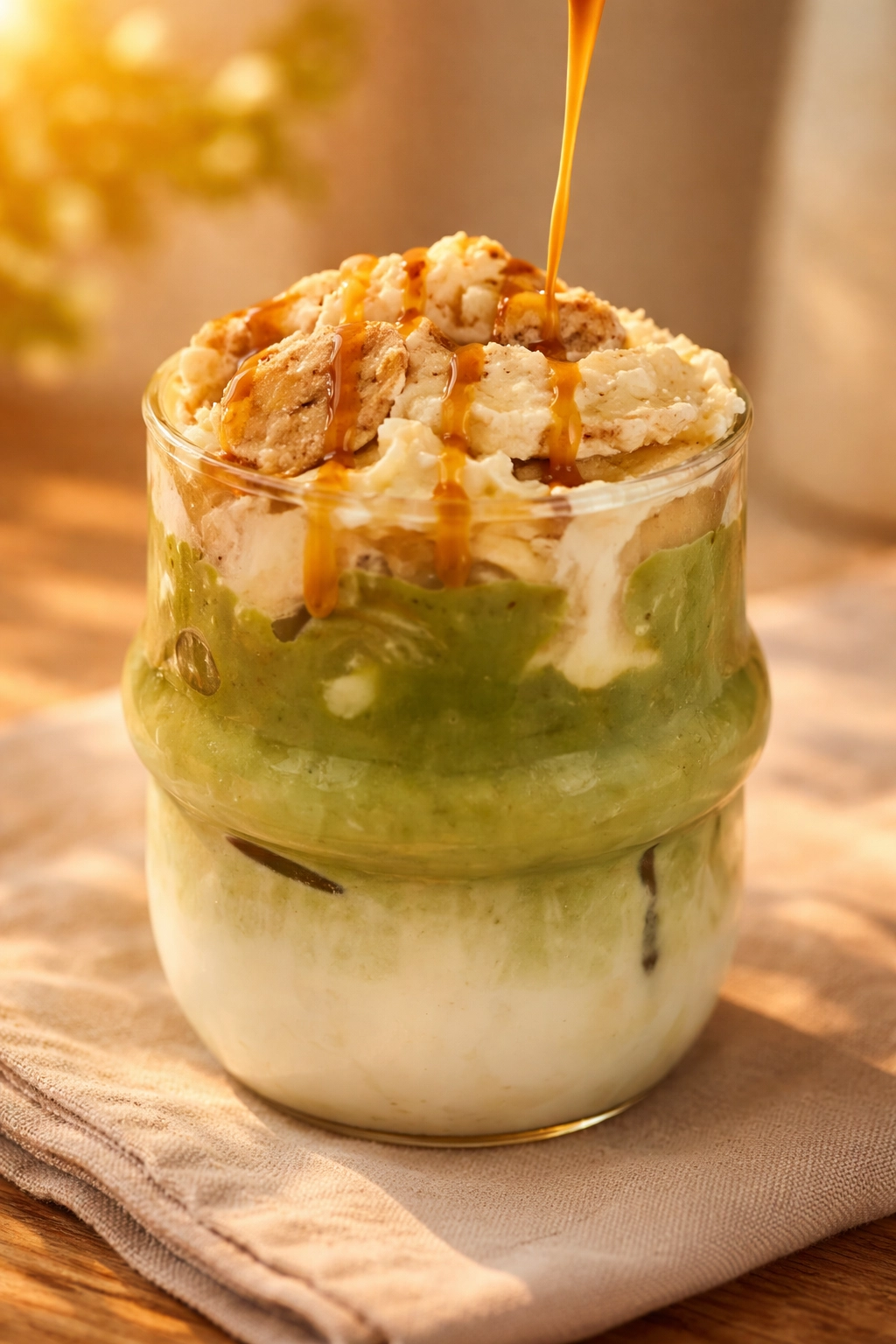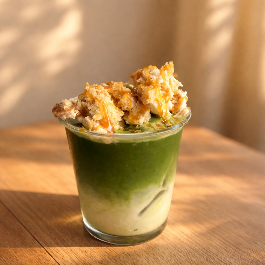 Matcha trifft Dessert-Vibe: Dieser Banana Pudding Iced Matcha Latte ist weit mehr als ein klassisches Getränk oder schlichtes Dessert – er steht für kreative Genussmomente auf höchstem Niveau. Cremig, fruchtig und mit einer verführerischen Dessertnote vereint er aktuelle Trends wie Layered Drinks und Sweet Matcha Creations in einem stilvollen Glas. Statt eines herkömmlichen Latte erwartet Sie eine harmonisch geschichtete Komposition aus aromatischem Matcha, frischer Banane, luftiger Creme und knusprigen Keksstückchen nach Wahl.