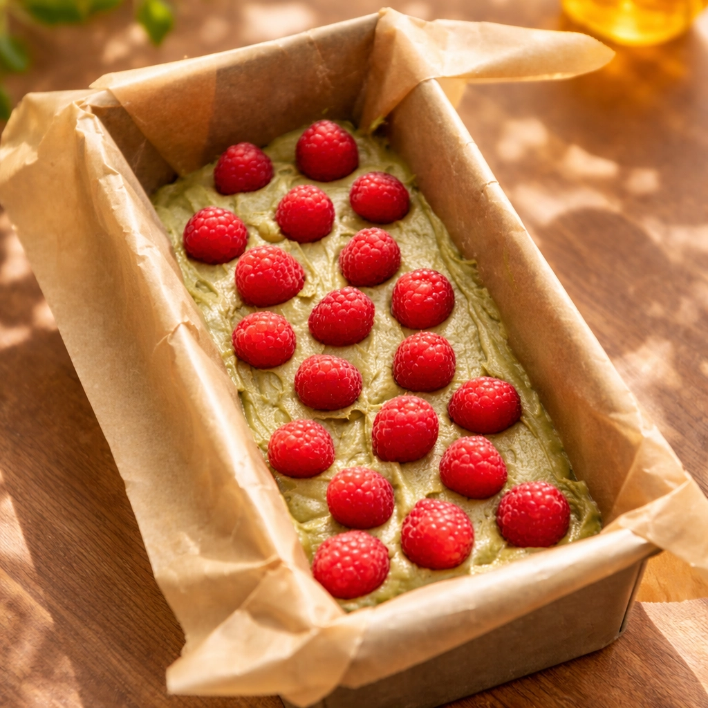 Der saftige Matcha-Rührteig bildet die aromatische Basis, während die cremige Frischkäse-Schicht für die typische Cheesecake-Textur sorgt. Fruchtige Himbeeren setzen nicht nur optische Akzente, sondern bringen eine angenehme Frische ins Spiel, die perfekt mit dem leicht herben Matcha harmoniert.