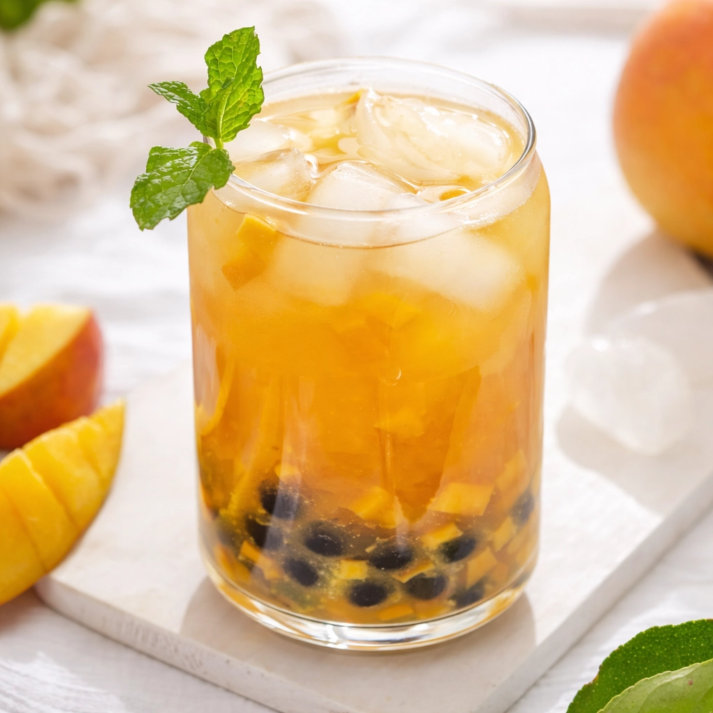 Mit schwarzem Tee, Vanille, Zimt, Kardamom und Mangoaroma. Zur Zubereitung eines fruchtigen Chais. Besonders lecker mit 6% Honig.
